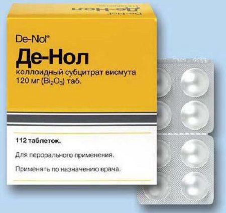 | Название препарата | Де-Нол (De-Nol) | Международное непатентованное наименование: Висмута трикалия дицитрат |